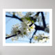 O sol primavera ilumina as delicadas e brancas flores de uma ameixa num jardim inglês.