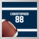 Jogadores de futebol americanos, fãs de ferro-grade e treinadores de times de futebol cujas cores de equipe são azul-escuro e branco vão desfrutar desta design com design em azul-escuro estilo esporte com listras brancas e texto personalizável para seu nome e número. Uma bola de futebol também faz parte do design. Feito em parte a partir de gráficos licenciados e © Graphics Factory.com. Outras combinações de cores estão disponíveis em nossa loja para as suas próprias cores de equipe e nós acolhemos solicitações personalizadas, contate-nos através de nossa loja GiftsBonanza antes da compra e ficaremos felizes em ajudar.