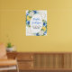 This fun and whimsical poster features watercolor blue, yellow and white flowers with foliage on a gold geometric frame. The text combines handwritten script and serif fonts for a stylish and modern look. It can be personalized with your baby's birth stats, such as name, size, date and time of birth, or if you would like to give it as a shower gift you are able to edit and remove text.