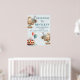 A charming birthday welcome sign featuring two illustrated Hedgehogs in party hats, festive balloons, and a birthday cake with glowing candles. Set against a soft blue background with a delicate heart pattern, the design radiates warmth and celebration. The central message is customizable, making it perfect for greeting guests at a joyful first birthday gathering.
