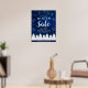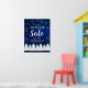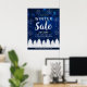 Poster de anúncio de venda de varejo Blue & White Winter com árvores de inverno, flocos de neve e fundo azul de boque.
