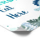 Este adorável sinal de mesa seria uma adição excelente a uma festa de aniversário temática de dinossauro. A design apresenta um dinossauro azul com folhas de aquarela tropical.