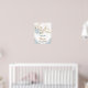 Personalize this whimsical bunny rabbit welcome sign with your own wording easily and quickly, simply press the customize it button to further re-arrange and format the style and placement of the text. Featuring a sweet baby bunny rabbit sitting on a blue floral and greenery adorned crescent moon, with a "we're over the moon!" headline. Matching items available in store! (c) The Happy Cat Studio