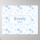 Poster Blue Floral Custom Name Decor Baby Nursery