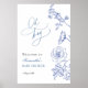 Sinal de chá de fraldas Floral Azul honrando a mãe de ser! Design apresenta uma borda de flores desenhadas à mão azul. Personalize com suas informações ou clique em "Clique para personalizar mais" para editar estilos de fonte, tamanho e cores.