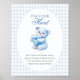 Poster Blue Gingham Teddy Bear Neutral Baby Shower