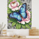 Poster Blue Morpho Butterfly Floral Botanical Art