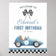 Poster Blue Race Car 1st Birthday Welcome Sign