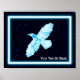 Uma imagem de linha simples, brilhante, azul e branca de um Raven (Corvus corax) em uma imagem de fundo estrelada. Adicione seu próprio texto.