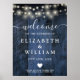 Poster Blue Rustic Wood String Light Weding Sinal de Boas