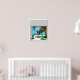 Mares tropicais azuis e praias, cena de janela falsa, para um banheiro sem janelas ou parede de escritório. Poster de cenas de ilusão óptica divertida e realista para um escritório ou uma parede de estudo.
