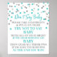 Não diga poster de sinal de jogo de bebê para chá de fraldas em padrão de confete azul claro e prateado. Observe que o efeito de brilho é apenas efeito fotográfico.