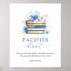 Add excitement with this Blue Storybook Baby Shower Pacifier Hunt Sign! Guests search for hidden pacifiers throughout your celebration, and the one who finds the most wins. Perfect for engaging family and friends, with charming watercolor blue books and florals for a cohesive storybook décor.