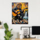 Esta trabalho de arte única apresenta um legal leão vestindo óculos de sol e uma jaqueta de couro, tocando apaixonadamente um violão acústico enquanto sentado em um tronco caído. Atrás dele, uma cascata texturizada de cascata em um riacho azul, cercada por madeira rústica. As pinceladas grossas e texturizadas da pintura dão uma qualidade dinâmica e expressiva à água e à madeira, com "Rock or Die" ousadamente mostrado abaixo.