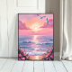 Poster Blush Beach | Pink Ocean Sunset Coastal Watercolor