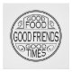 Boa comida, bons amigos, bons tempos citaram design, estilo vintage. O cenário pode ser escolhido.
