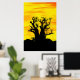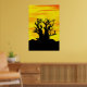 Silhouette of the unusual boab tree against a bright yellow and red sky, showing the native tree against the amazing colours of the Kimberley region in Western Australia. Original photography and artwork by GiftsBonanza 2010. sgb01
