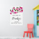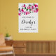 Lindo sinal de boas-vindas cor-de-água floral rosa apresenta um spray de pânico rosa e branco no topo. O nome da celebrante do aniversário é escrito em uma escrita muito bonito e feminina. Duas linhas acima e abaixo permitem personalizar sua mensagem de boas-vindas.