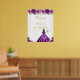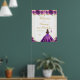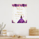 Esta elegante e glamourosa placa de boas-vindas festas de aniversário apresenta uma bela princesa com cabelo moreno e pele justa em um vestido de bola roxa escura. O texto combina o script manuscrito e as fontes sans serif modernas para um aspecto elegante e sofisticado. Os arranjos florais, borboletas e confete de ouro criam a mistura perfeita de rústicos e quicos. Gráficos por www.etsy.com/uk/shop/SunflowerDayLove