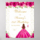 Esta elegante e glamourosa placa de boas-vindas festas de aniversário apresenta uma bela princesa com cabelo vermelho castanho e pele clara num vestido de bola rosa quente. O texto combina o script manuscrito e as fontes sans serif modernas para um aspecto elegante e sofisticado. Os arranjos florais, borboletas e confete de ouro criam a mistura perfeita de rústicos e quicos. Gráficos por www.etsy.com/uk/shop/SunflowerDayLove