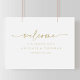 Este cartaz de boas-vindas para festa de noivado em ouro moderno e elegante é perfeito para uma celebração de noivado rústico. O design simples e elegante apresenta uma tipografia clássica, em ouro e com letra fancy.