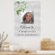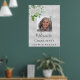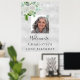 Poster de boas-vindas para uma festa de aniversário 50ª (ou qualquer idade). Personalize e adicione uma foto, um nome e uma idade. Um fundo com aspecto sujo de prata e poeira brilhante, decorado com flores brancas, rosas e verde. Para trás: sem design.