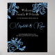 Elegante Bem-vindo ao nosso poster de Casamento com espirais de brilho azul. Poster perfeito para colocar na entrada da sua recepção ou selecione um tamanho menor para colocar em cada mesa. Adicione uma pequena cola branca e aspergira com Glitter para fazer este poster brilhar. Crie seu próprio sinal de boas-vindas para sua família e amigos personalizando texto e fonte. A cor de fundo pode ser alterada para qualquer cor que você quiser.