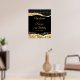 Este elegante e glamouroso sinal de boas-vindas festas de aniversário apresenta lágrimas de brilho preto e dourado com falso brilho num fundo preto. O texto combina o script manuscrito e as fontes sans serif modernas para um aspecto elegante e sofisticado.