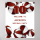 Este poster de festa de aniversário de boas-vindas do tema basquete é totalmente personalizável e apresenta bolas de basquete brancas e marrom organizadas aleatoriamente nas bordas superior e inferior do poster - personalize sua mensagem personalizada e a idade da criança, ou personalize o texto para se adequar ao seu evento - por katz_d_zynes