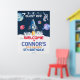 Bem-vindos aos convidados do seu partido com um poster personalizado adorável. Este design apresenta um astronauta, navios-foguete e planetas coloridos. Personalize este produto adicionando o nome, a idade e a data do evento da criança. Perfeito para a festa de aniversário de um menino.