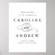 Um Sinal de Boas-vindas de Script Clássico de Preto e Branco com os nomes dos casais e o script elegante de caligrafia e com data e local do evento. Clique no botão editar para personalizar este design com seus detalhes.
