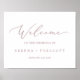 Este delicado poster de boas-vindas para caligrafia rosa de ouro é perfeito para um casamento moderno. A design romântica minimalista apresenta uma magnífica e elegante tipografia cor-de-rosa rosa, empoeirada, num fundo branco, com um aspecto simples e limpo. Personalize o poster com o nome da noiva e do noivo, e a data do casamento.