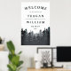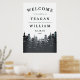 Bem-vindos convidados para o seu casamento rústico, florestal ou de montanha com o nosso poster da Floresta de inverno, com uma fronteira de pinheiros verdes em tons ricos de cinzas azuis e de carvão. Adicione seus nomes, data de casamento e texto de boas-vindas personalizado usando os campos fornecidos.