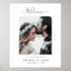 Esta simples placa de boas-vindas do casamento com fotos chic apresenta uma design moderna e limpa. Demos a esta design minimalista uma palmada de pânico com "Bem-vindo" acima da foto em uma fonte moderna fluente que consegue ser elegante e divertido ao mesmo tempo. Adoramos o arco gracioso do 'W', assim como o florescimento estilizado e alongado nos dois extremos do mundo. Para destacar este aspecto do design, escolhemos um tom elegante de verde-oliva escura para a parte 'Bem-vindo' do design. Personalize este poster com a sua foto favorita e torne-o exclusivamente seu! Você pode facilmente editar o texto também para se adequar ao seu gosto, e também pode alterar a fonte e a cor do texto. Você pode mudar 'Bem-vindo' para outra saudação de sua escolha, mudar 'para o casamento de' para 'para o nosso casamento' e você pode excluir os detalhes da data em favor de outra mensagem ou de um espaço de vazio onde essa linha de texto esteja, se preferir. Você também pode ativar o filtro preto e branco se quiser ver como sua foto colorida ficaria em preto e branco. E se preferir não usar uma foto, você pode usar sua ilustração favorita, etc. no lugar de uma foto.
