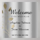 Simples, elegante, cartaz de Boas-vindas ao casamento de prata chique com espirais florais douradas e caligrafia moderna.
