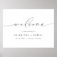 Este sinal de boas-vindas do casamento apresenta uma elegante letra de escrita caligráfica e design clássico minimalista. Edite todas as cores e o texto *maioria* para atender às suas necessidades. Este sinal de boas-vindas faz a adição perfeita ao seu casamento ou evento moderno.