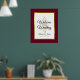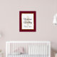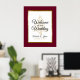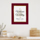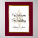 Personalize este símbolo elegante de "Bem-vindo ao nosso Casamento" com seu próprio toque especial. Esta design festiva mostra os nomes da noiva e do noivo e a data do casamento, uma árvore de Natal estrelada e uma elegante estrutura de folha de ouro sobre um fundo burgundy. Perfeito para um casamento de inverno ou Natal.
