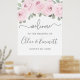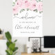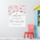As rosas rosadas elegantes estão aninhadas em folhas verdes de sábio macio. Bem-vindo é escrito em uma fonte de script de tendência. Os nomes dos casais de casamento também estão em uma fonte de script popular. O texto da cinza mole complementa a paleta floral pastel. Este sinal de boas-vindas do casamento é parte da coleção Botânica Rosa Rosa Rosa Rosa Rosa Rosa Rosa.