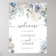 Poster Boas-vindas ao Casamento Floral Branco e Azul Chic