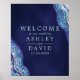 Poster de Boas-Vindas do Casamento Gemstone Geode Gemstone Agate Roxo. Este elegante e moderno design abstrato da tendência apresenta linhas de gemstone agreladas, brilhantemente roxas e brilhantes, contra um fundo azul-marinho púrpura de aquarela.