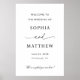 Sinal de casamento com uma simples design moderna. Personalize com suas informações. Clique em "clicar para personalizar mais" para alterar o estilo, o tamanho ou a cor da fonte.