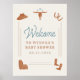 Este sinal de boas-vindas ao chá de bebê apresenta gráficos modernos de cowboy do sudoeste e cores laranja queimado e azul boêmio. 💜 AS CORES SÃO EDITÁVEIS! Clique em 'editar design' para alterar as cores do seu evento. Você verá o grupo gráfico na parte inferior do painel de camadas - desagrupe para editar as cores.