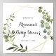 Este poster de boas-vindas de chá de fraldas verde-tropical de ouro geométrico é perfeito para um chá de fraldas simples. A design apresenta lindas folhas verdes pintadas à mão, enfeitando um quadro geométrico dourado.