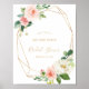 Este pôster de boas-vindas ao chá de noiva geométrico verde e dourado é perfeito para uma celebração de casamento rústico. O design apresenta lindas rosas pintadas à mão em branco, rosa e blush e um toque de verde, adornando molduras geométricas douradas, inspirando beleza artística.