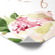 Lindas peônias em aquarela e cartaz de boas-vindas ao chá de noiva com caligrafia e pontos em dourado rosa falso.