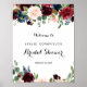 Este pôster de boas-vindas ao chá de noiva rústico de outono em borgonha é perfeito para uma celebração simples de chá de noiva. O design apresenta flores radiantes e graciosas pintadas à mão em borgonha, vermelho, azul-marinho, azul e rosa, inspirando beleza natural.
