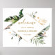 Este sinal de boas-vindas do casamento apresenta folhas de palmeiras de aquarela, folhas de bananeira, folhas tropicais exóticas e folhas de ouro falsas com formato de diamante dourado falso. É perfeito para um casamento tropical, praia, verão ou destino.