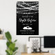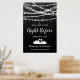Jantar de Ensaio Boas-vindas à Noite Anterior Placa - este design apresenta luzes de corda e estrelas em um fundo texturizado preto. E na parte inferior - Dois cisnes formando um coração.
