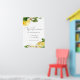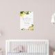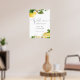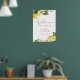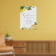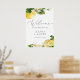 Este poster de boas-vindas ao casamento vertical do limão moderno é perfeito para um casamento de primavera ou verão. O design mediterrânico rústico apresenta limões aquosos brilhantes e bonitos com flores brancas boêmicas e folhas verdes elegantes. Personalize o poster com o nome da noiva e do noivo, e a data do casamento.