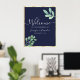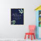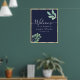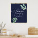 Bem-vindos à celebração da elegância do eterno e do encanto moderno. Este poster de boas-vindas azul de marinho apresenta uma mistura de elementos rústicos e botânicos com aquarela eucalipto verde e um simples e moderno roteiro de caligrafia. Perfeitamente projetado para saudar seus convidados com sofisticação e estilo.
